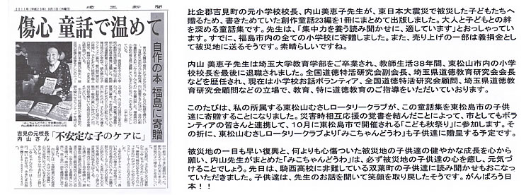 本日の卓話講師は「みこちゃん童話」の著者 内山美恵子先生です。